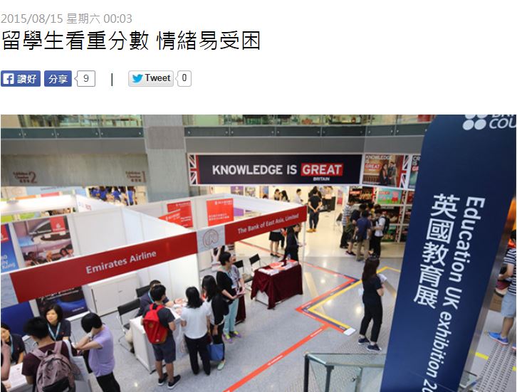 留學生看重分數 情緒易受困 - 經濟日報 15/08/2015